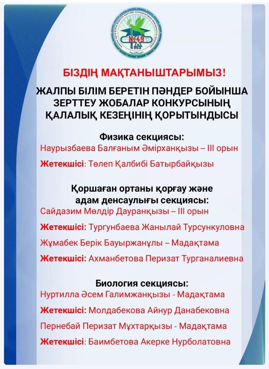 27 ноябрь 2022 0 1 2 3 4 5 ЖАЛПЫ БІЛІМ БЕРЕТІН ПӘНДЕР БОЙЫНША ЗЕРТТЕУ ЖОБАЛАР КОНКУРСЫНЫҢ ҚАЛАЛЫҚ КЕЗЕҢІНІҢ ҚОРЫТЫНДЫСЫ